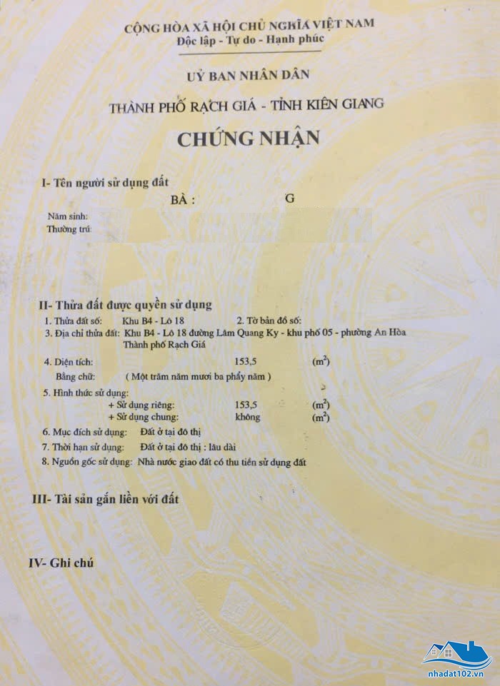 Bán nền 5x18,5 hẻm 252 Trần Khánh Dư (phường An Hòa cũ - phường Rạch Giá, An Giang)