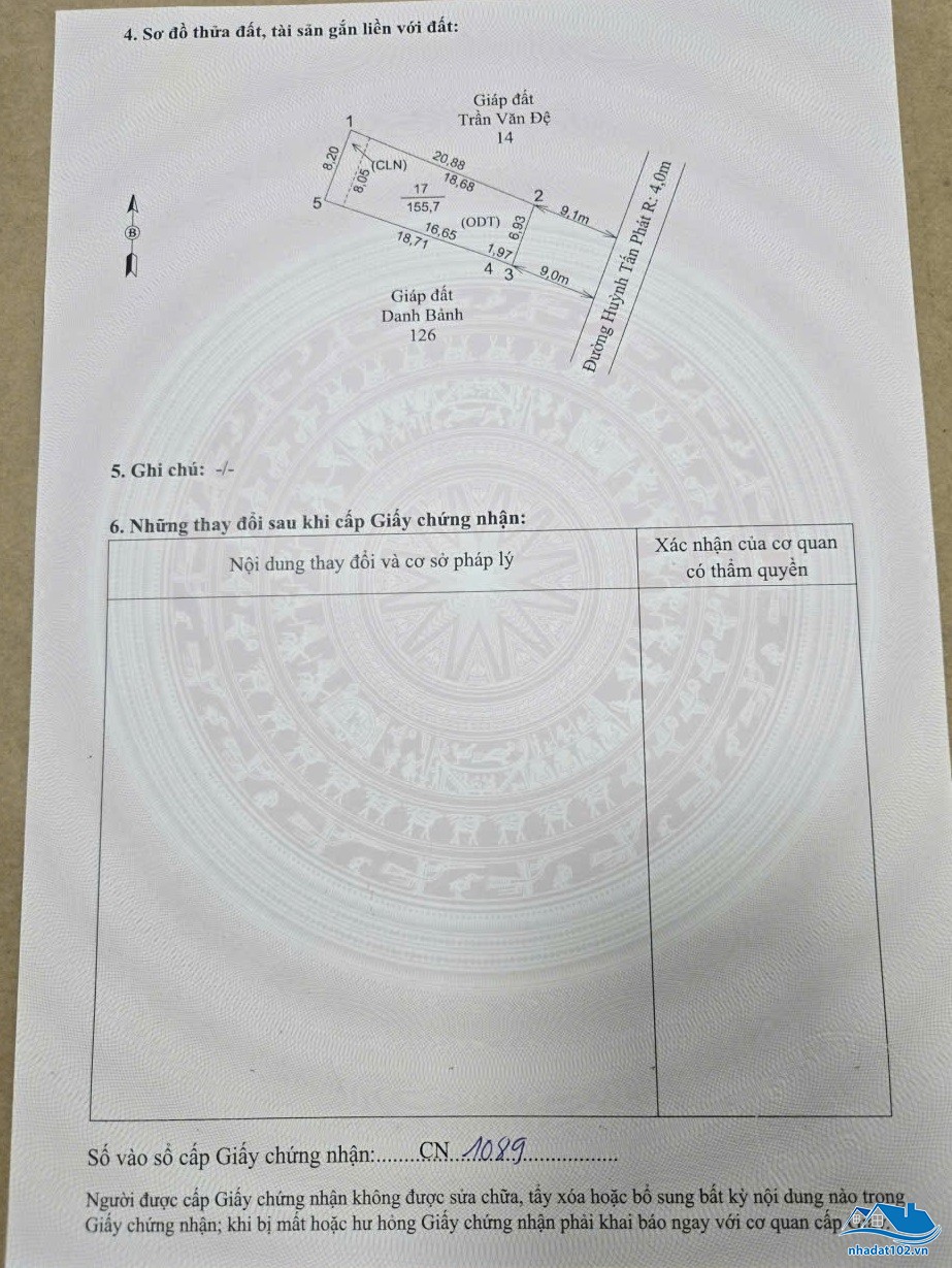 Diện tích: 155.7m² Ngang: 6.9m Dài: 20m Hướng: Đông Nam