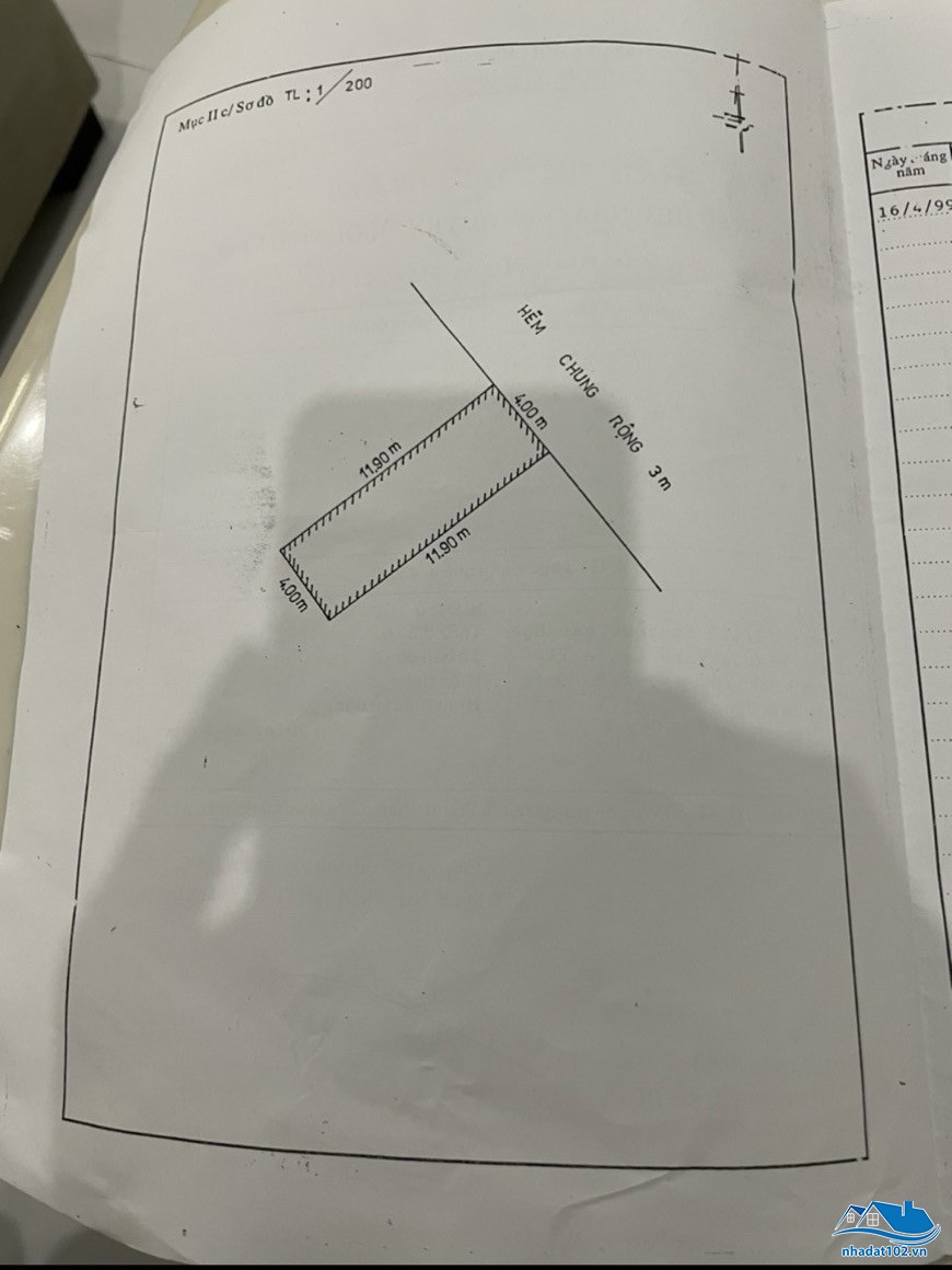 Diện tích đất: 4m x 11,9m = 47,9m2; đất ở tại đô thị 100%.