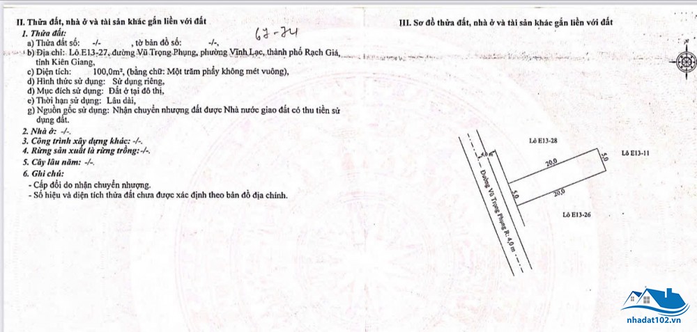 KG006723 - Bán nhà 1 trệt 1 lầu, E13- 27 đường Vũ Trọng Phụng, phường Rạch Giá, tỉnh An Giang (phường Vĩnh Lạc cũ)