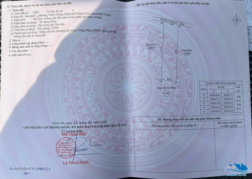 Diện tích: 302m² Ngang: 8.8m Dài: 34.5m Hướng: Bắc