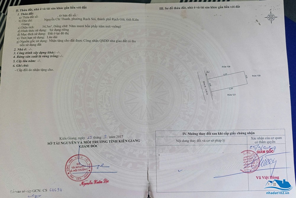 Bán nhà 211m2 hẻm Nguyễn Thiện Thuật (phường Rạch Sỏi, Tp Rạch Giá, Kiên Giang).