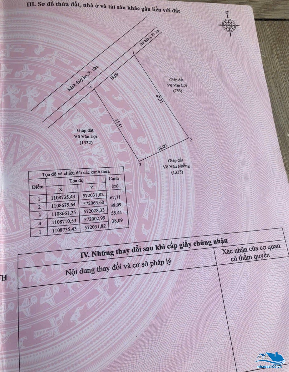 Diện tích: 2308m² Ngang: 38m Dài: 60m Hướng: Tây Bắc